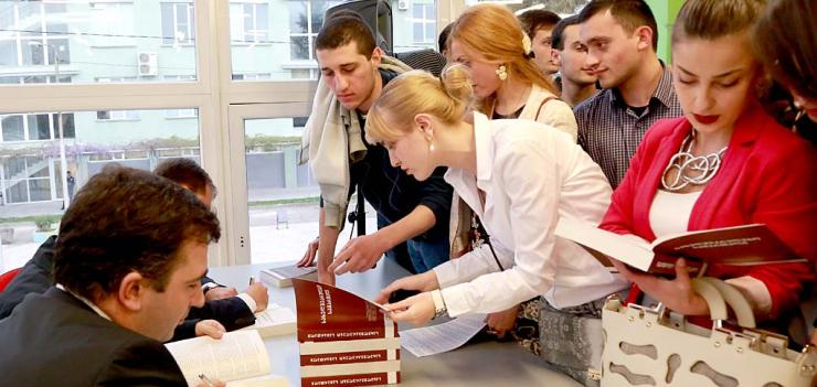 On April 16, 2014, EWMI and the National Center for Commercial Law (NCCL) at Free University held an event to publicly present a newly published, Georgian language, Contract Law Textbook. Georgia’s leading experts in contract law wrote the book over the course of the last year – under the editing direction and with the financial support of EWMI through the Judicial Independence and Legal Empowerment Project (JILEP). The book is designed to be used in the modern law school classroom. It not only provides law students with explanations of the core concepts of Georgian contract law, but the book is also structured in a way that teaches them how to analyze and solve problems. Each chapter of the book consists of a theoretical section, enriched by relevant practical examples. More than 100 people attended the book release event and the book signing that followed. Both EWMI-JILEP and the NCCL have made the book available online through their websites. EWMI will provide a number of hard copy versions to targeted law school libraries, public libraries, law firms, and relevant government institutions.