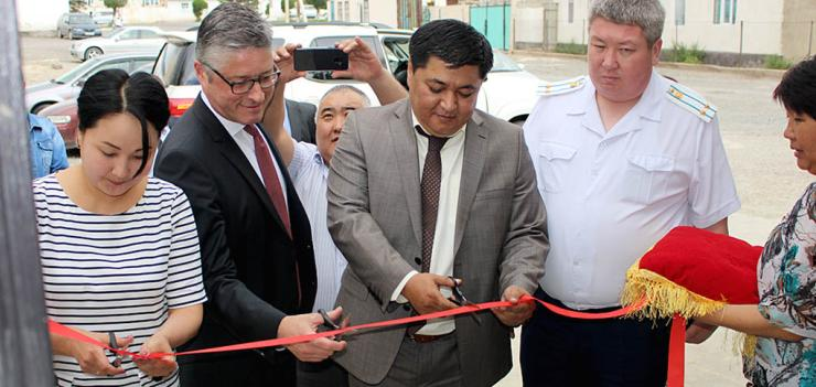 The Director of the Center for Coordination of State-Guaranteed Legal Aid under the Ministry of Justice of the Kyrgyz Republic, Akzhol Kalbekov, attended the June 22nd opening ceremonies along with CGP Director, Garry Ledbetter, EWMI Regional Director of Legal Programs, Nicolas Mansfield, the Head of the Issyk-Kul Rayon Administration of the Kyrgyz Republic, Daniyar Imanaliev, the Mayor of Balykchi city, Almaz Mambetov, Issyk-Kul oblast court representatives, local self-government bodies, civil society organizations, and members of the media.